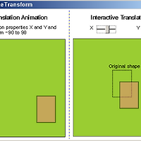 <Window x:Class="WpfApplication13.MainWindow" xmlns="http://schemas.microsoft.com/winfx/2006/xaml/presentation" xmlns:x="http://schemas.microsoft.com/winfx/2006/xaml" Title="SkewTransform" Height="330" Width="710"> <Window.Resources > <SolidColorBrush x:Key="MyGrayGridBrush" Color="YellowGreen"/> </Window.Resources> <Viewbox Stretch="Uniform"> <Grid Width="725" Height="330" HorizontalAlignment="Left" VerticalAlignment="Top" ShowGridLines="True"> <Grid.ColumnDefinitions> <ColumnDefinition Width="310" /> <ColumnDefinition Width="410" /> </Grid.ColumnDefinitions> <StackPanel Grid.Column="0"> <TextBlock HorizontalAlignment="Center" Margin="10,10,10,0" TextWrapping="Wrap" FontSize="14" FontWeight="Bold" Text="Skew Animation"/> <TextBlock Margin="10,10,10,0" TextWrapping="Wrap" Text="The Skew properties AngleX and AngleY are animated form 0 to 360"/> <Border Margin="10" BorderBrush="Black" BorderThickness="1" Background="{StaticResource MyGrayGridBrush}" HorizontalAlignment="Left"> <Canvas ClipToBounds="True" Width="240" Height="250"> <Rectangle Canvas.Left="100" Canvas.Top="80" Width="50" Height="70" Fill="LightCoral" Opacity="0.5" Stroke="Black" StrokeThickness="2"> <Rectangle.RenderTransform> <SkewTransform x:Name="skew" CenterX="25" CenterY="35"/> </Rectangle.RenderTransform> </Rectangle> <!-- Animate the rectangle: --> <Canvas.Triggers> <EventTrigger RoutedEvent="Canvas.Loaded"> <BeginStoryboard> <Storyboard RepeatBehavior="Forever"> <DoubleAnimation Storyboard.TargetName="skew" Storyboard.TargetProperty="AngleX" From="0" To="360" Duration="0:0:10"/> <DoubleAnimation Storyboard.TargetName="skew" Storyboard.TargetProperty="AngleY" From="0" To="360" Duration="0:0:10"/> </Storyboard> </BeginStoryboard> </EventTrigger> </Canvas.Triggers> </Canvas> </Border> </StackPanel> <StackPanel Grid.Column="1"> <TextBlock HorizontalAlignment="Center" Margin="10,10,10,10" TextWrapping="Wrap" FontSize="14" FontWeight="Bold" Text="Interactive Skew"/> <Grid Width="360" Height="26" HorizontalAlignment="Left" VerticalAlignment="Top"> <Grid.ColumnDefinitions> <ColumnDefinition Width="70" /> <ColumnDefinition Width="50" /> <ColumnDefinition Width="70" /> <ColumnDefinition Width="50" /> </Grid.ColumnDefinitions> <TextBlock Margin="2,2,10,2" TextAlignment="Right" Text="AngleX"/> <Slider Name="tbAngleX" Width="50" Height="20" Grid.Column="1" Maximum="360" Minimum="0" Value="0"/> <TextBlock Margin="2,2,10,2" Grid.Column="2" TextAlignment="Right" Text="AngleY"/> <Slider Name="tbAngleY" Width="50" Height="20" Grid.Column="3" Maximum="360" Minimum="0" Value="0"/> </Grid> <Border Margin="10" BorderBrush="Black" BorderThickness="1" Background="{StaticResource MyGrayGridBrush}" HorizontalAlignment="Left"> <Canvas ClipToBounds="True" Width="410" Height="250"> <TextBlock Canvas.Left="90" Canvas.Top="63" Text="Original shape"/> <Rectangle Canvas.Top="80" Canvas.Left="100" Width="50" Height="70" Stroke="Black" StrokeThickness="1" StrokeDashArray="3,1"/> <Rectangle Canvas.Top="80" Canvas.Left="100" Width="50" Height="70" Fill="LightCoral" Opacity="0.5" Stroke="Black" StrokeThickness="2"> <!-- Set interactive scale: --> <Rectangle.RenderTransform> <SkewTransform CenterX="25" CenterY="35" AngleX="{Binding ElementName=tbAngleX,Path=Value}" AngleY="{Binding ElementName=tbAngleY,Path=Value}"/> </Rectangle.RenderTransform> </Rectangle> </Canvas> </Border> </StackPanel> </Grid> </Viewbox> </Window>