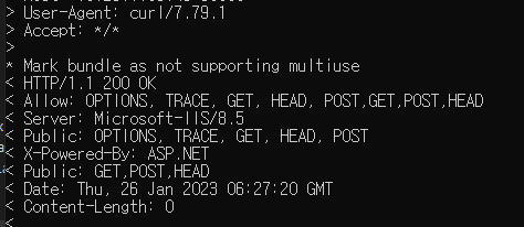 기존 결과 테스트 curl -v -X OPTIONS 아이피 : 포트