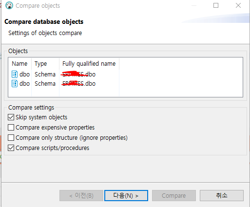 1.저는 운영과 개발 DB서버의 스키마 스크립트를 비교할꺼에요