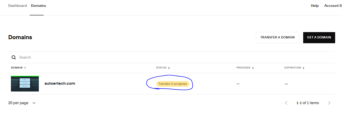 8. squarespace.com 로그인 -> 도메인 이전 선택